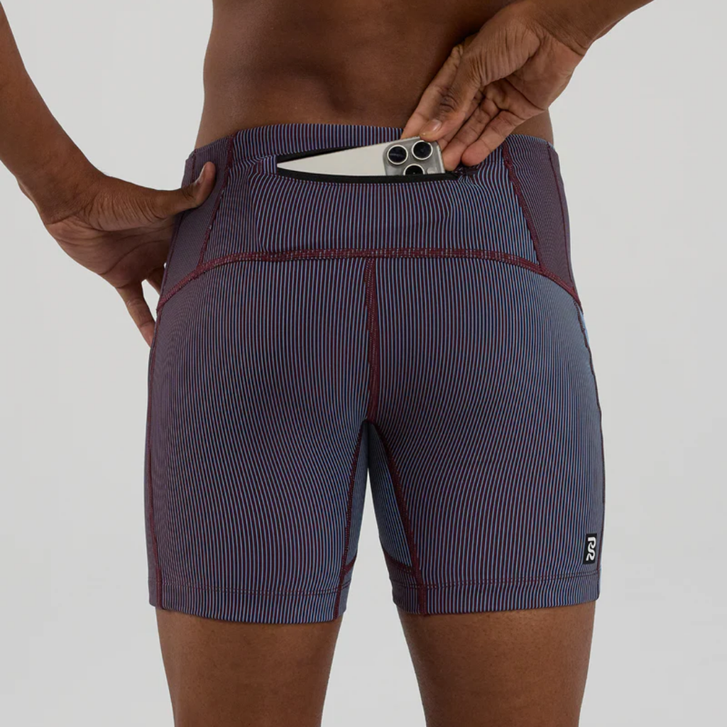 Bandit's classic Next Gen Half Tight fit, in their new ribbed Striped Cadence™ performance fabric with an optimized gusset shape for superior fit. Constructed with 7 total pockets - 2 iPhone-sized at outside thigh with waterproof liner, 4 gel-sized at back waistband, and 1 zippered back stash pocket at back yoke. Grip tape at front and back bottom hem to prevent ride-up without squeezing. Double-layered front fabric for extra coverage. Finished with custom branded drawstring, silicone branding patch at front left leg and camp at wearer's right back leg. New Fall '25 colorway.