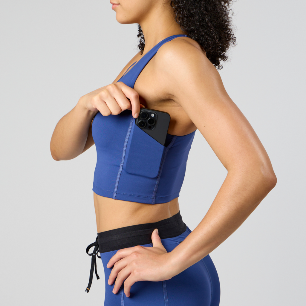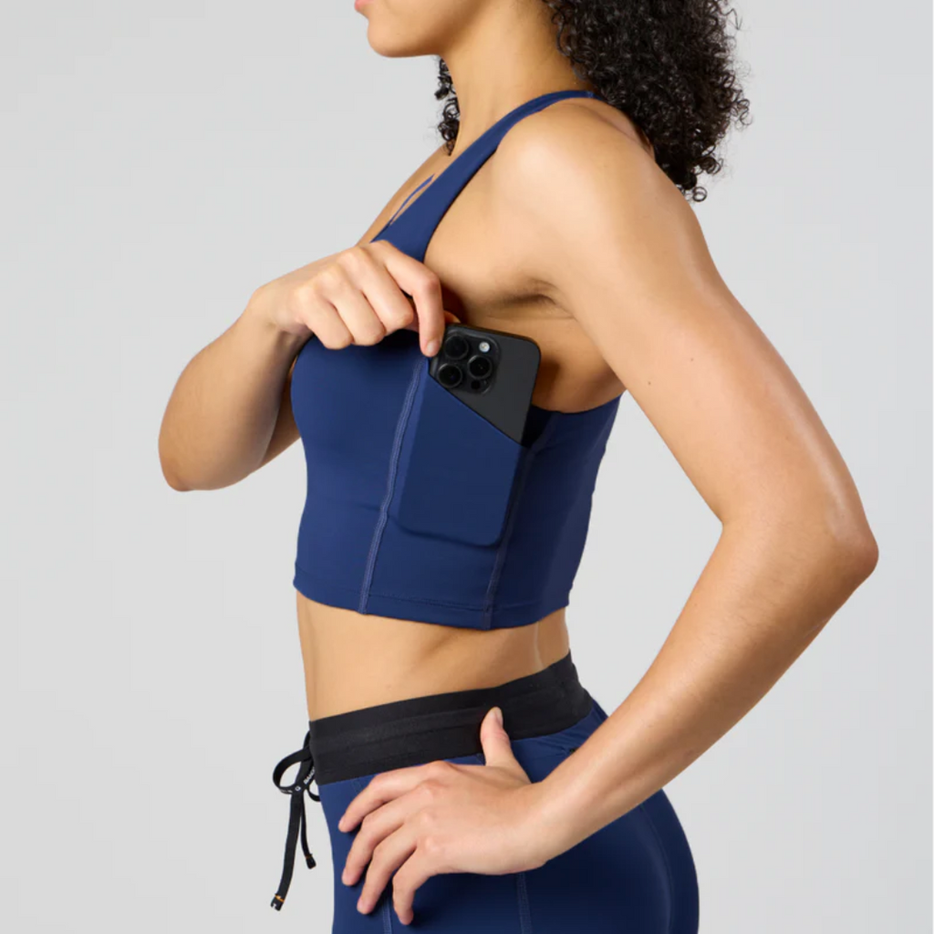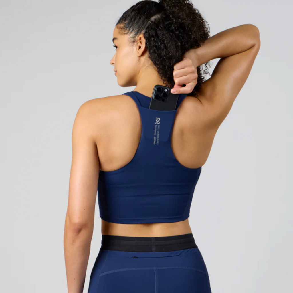 Bandit's classic racing crop fit and scoop neckline updated with a shelf bra for a faster and lighter feel. Details include their signature racer back & phone pocket, as well as side panels designed for gels and an iPhone-ready pocket. Made in our signature Stamina™ fabric that moves with you, while keeping you cool and supported.