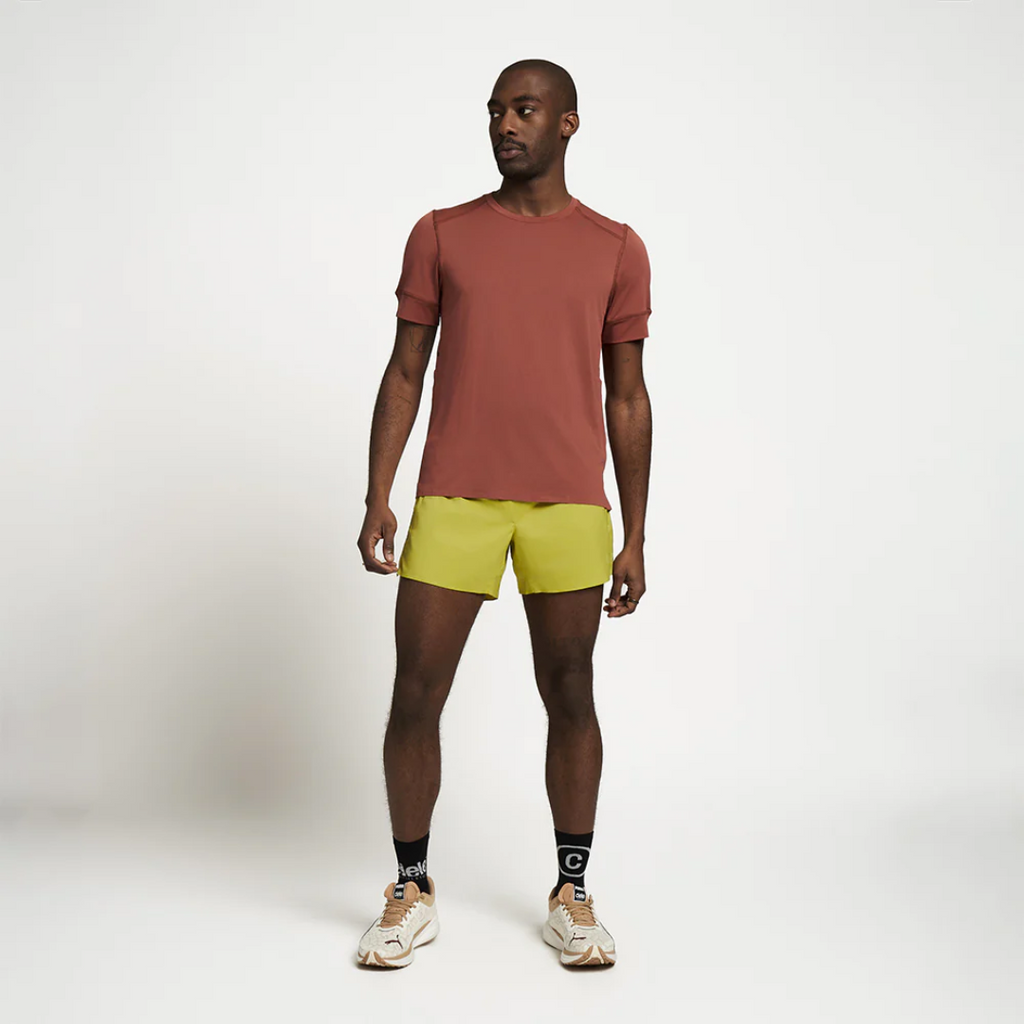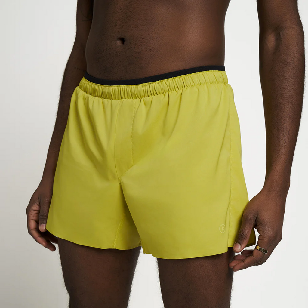 The quintessential 5 inch run short using a recycled polyester with a touch of elastane for stretch. This lightweight woven fabric keeps things light and breezy while fending off unexpected rain showers with a durable water repellent finish.