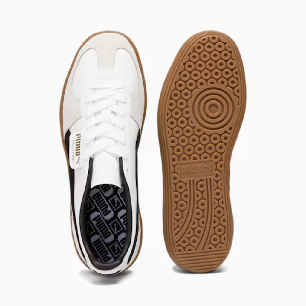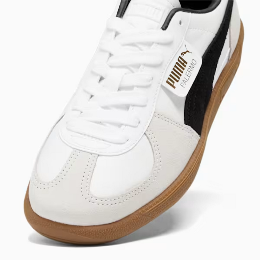 Straight from the archives, it’s the PUMA Palermo. This classic terrace shoe is revived today with its signature T-toe construction, plus extra-bold colorblocking and plush materials. Its design builds on PUMA’s heritage within soccer, while appealing to today’s sneakerheads and terrace fashion mavens