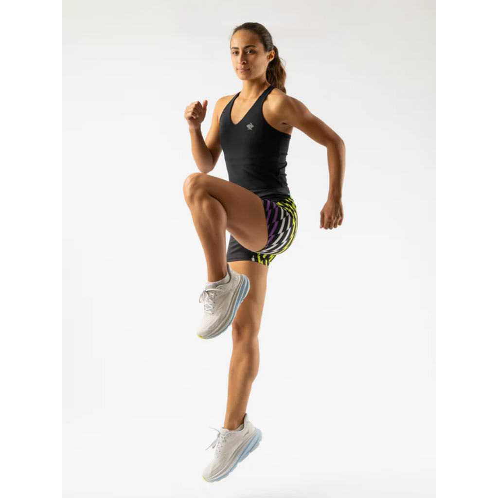 Made to race in sleek style, the rabbit Women's Tie Breaker 2.5" Short is answering the call for your new favorite race shorts! These short tights have a mid-rise waist with its lightweight and moisture-wicking performance fabric that is enhanced with incredible Ionic+ silver technology that fights bacteria to keep your fresh to the finish. Two front waistband pockets and a secure back pocket give you storage solutions for keeping gels and keys.