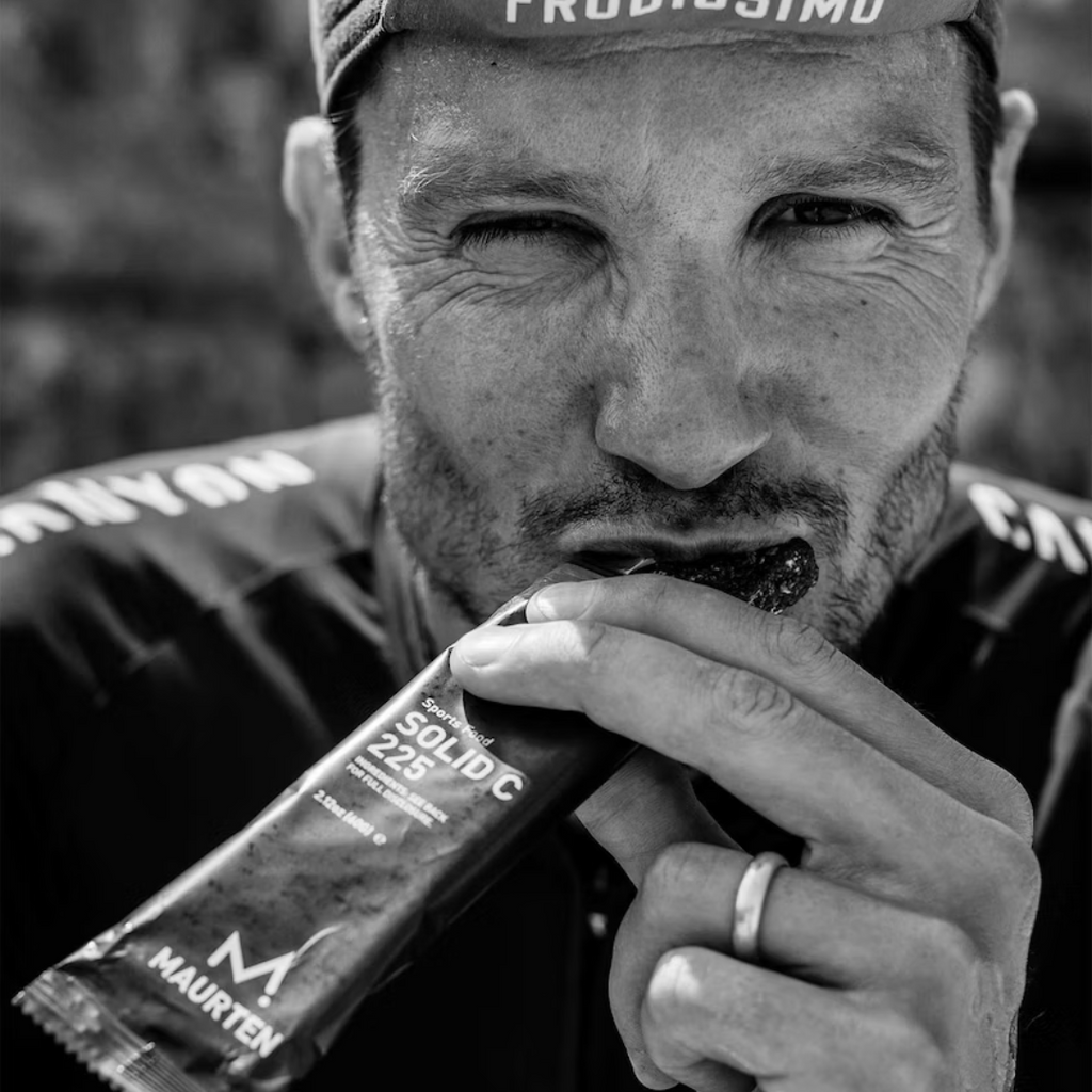 Back to basics. Maurten Solid bars are your go-to fuel — fast, light, low-fiber, and carbohydrate-rich.