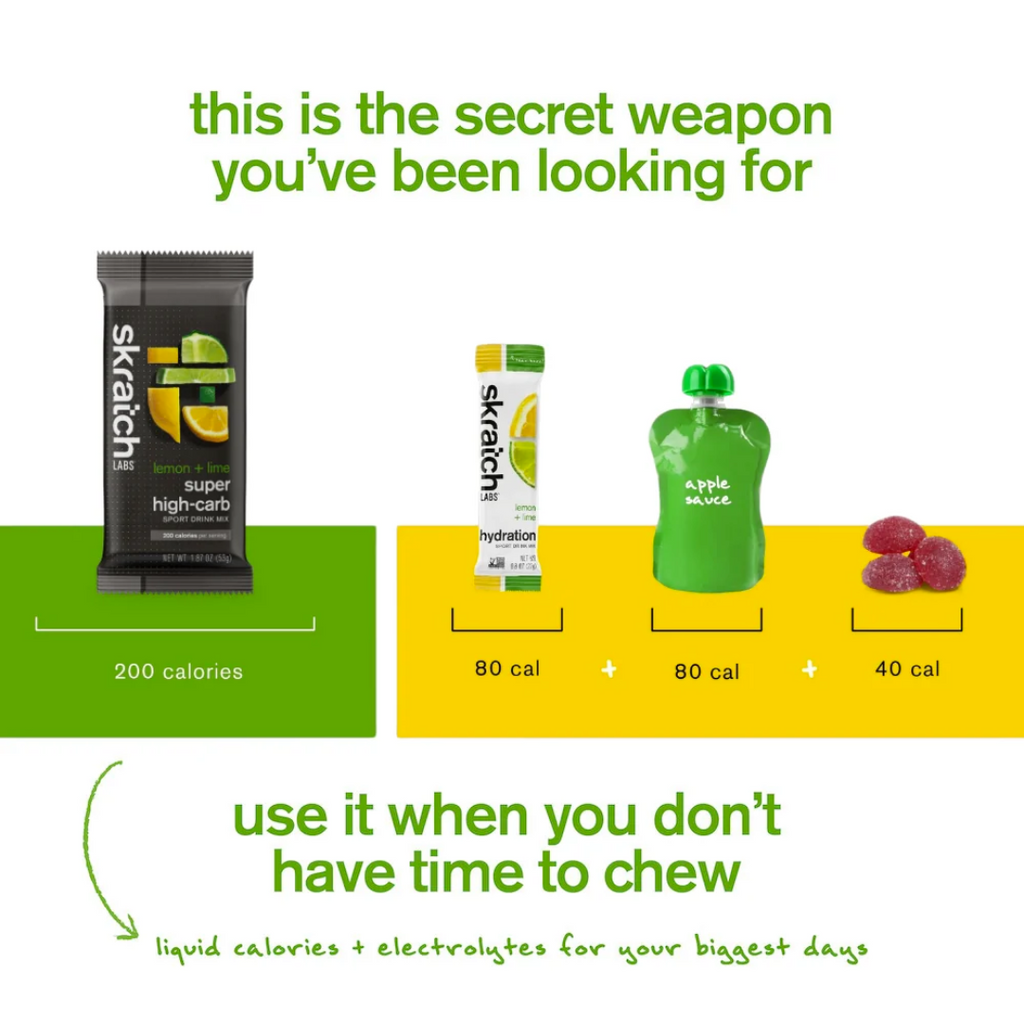 For years, Skratch has preached fuelling with real food, like their famous rice cakes or Energy Bars. Why? Because traditional fuelling gels and drinks use carbohydrates that break down too fast to tolerate, causing gastrointestinal distress. But they also get it -- you can’t always make or carry real food -- you want power in a bottle.