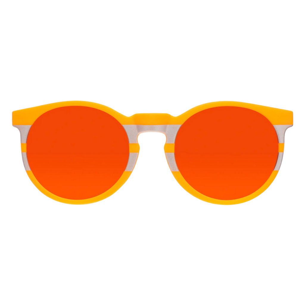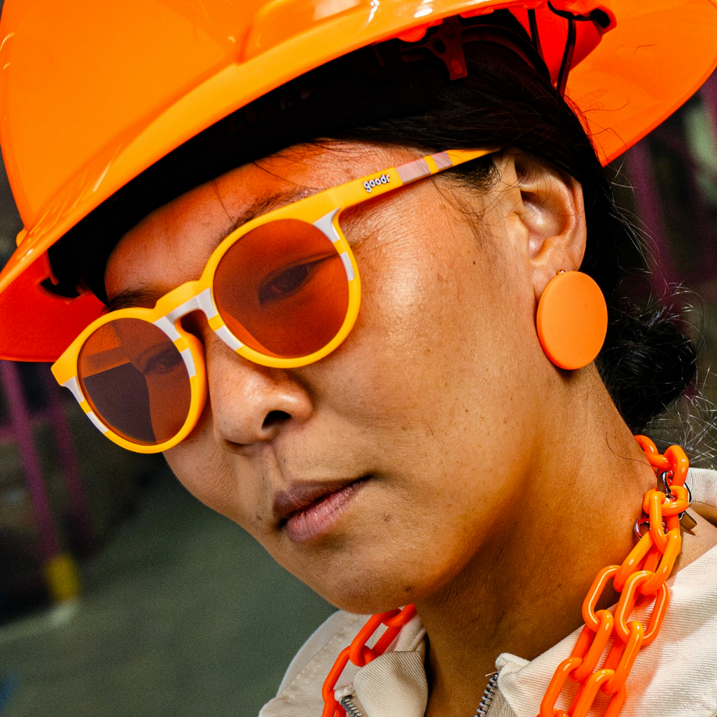WARNING: Face Under Construction. Rock these orange and reflective silver Circle Gs with orange lenses when you feel like channeling your inner traffic cone. Then, tell anyone who gets in your way to pardon your dust.