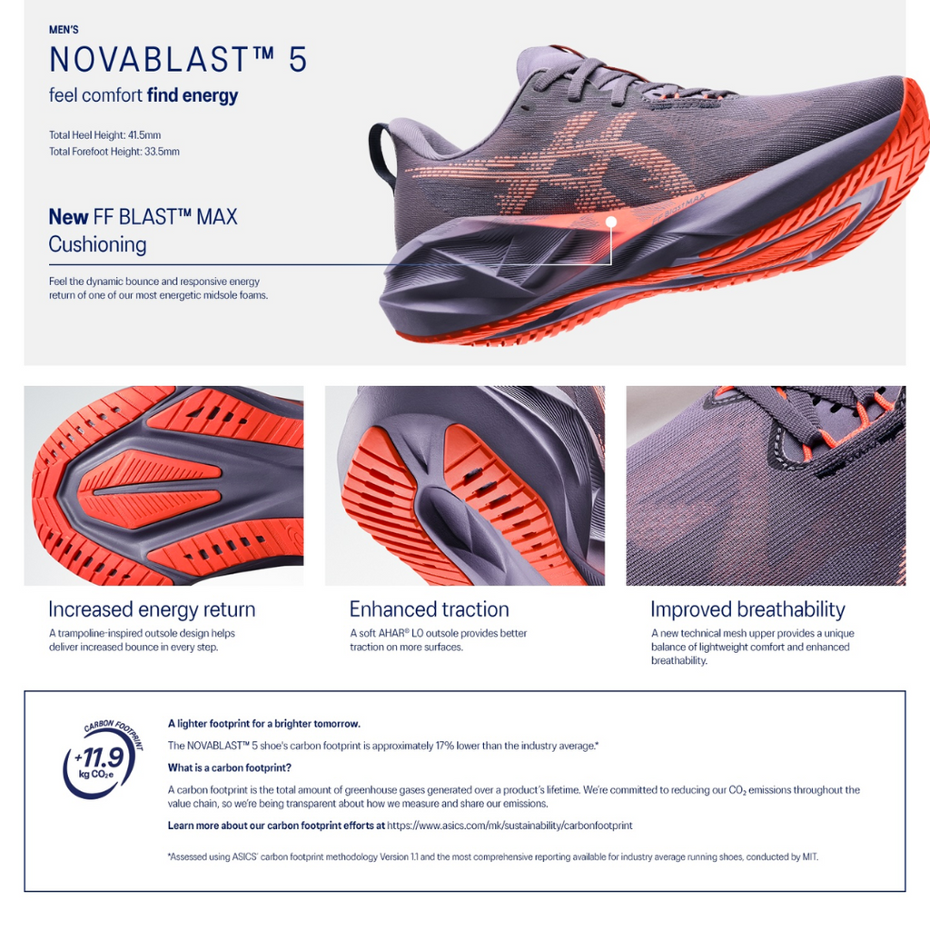 The NOVABLAST™ 5 running shoe's midsole and outsole geometry that helps produce an energized ride.