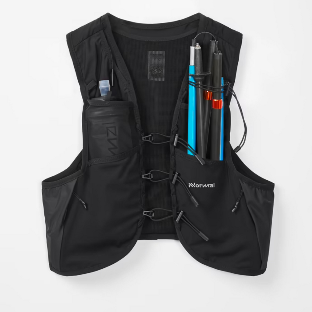 A high-performance hydration vest in black comes with next-level comfort – and 2 x flasks. Created through collaboration with numerous runners, and made for every race, terrain, and condition. The lightweight, streamlined design comes with pockets galore. So you can focus on following your path. And leaving no trace.