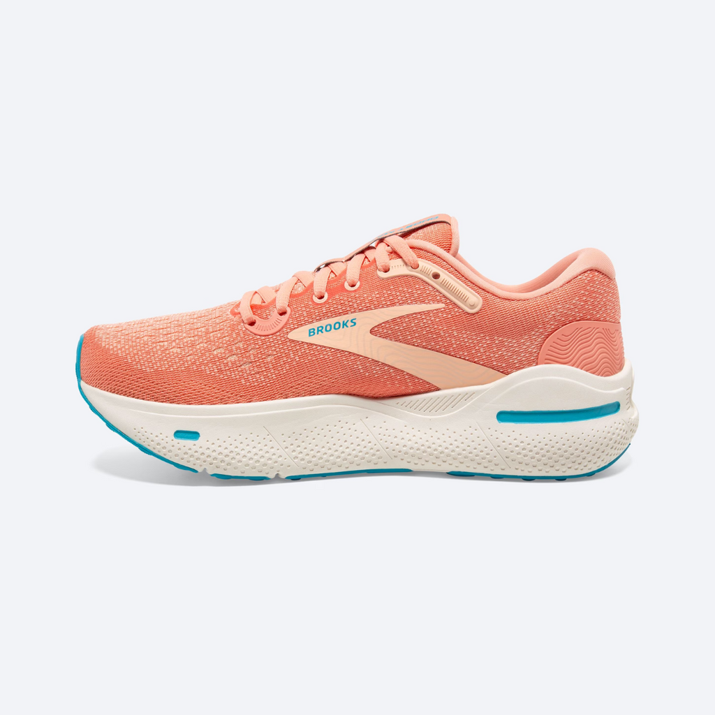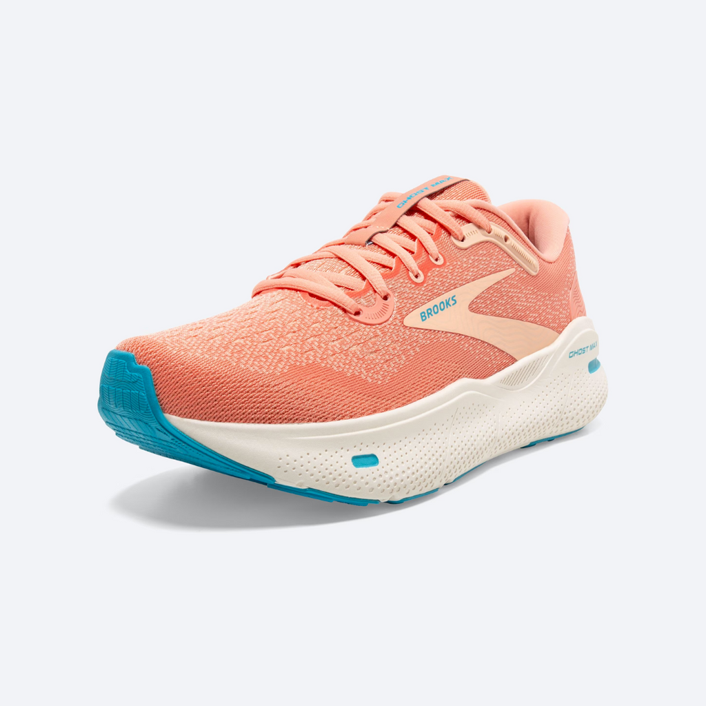 The new Ghost Max women's running shoe delivers enhanced protection, thanks to plenty of soft cushioning, a super-stable ride, and rocker-like transitions that propel you forward. This neutral shoe is great for running or walking, as it helps absorb impact to protect your feet.